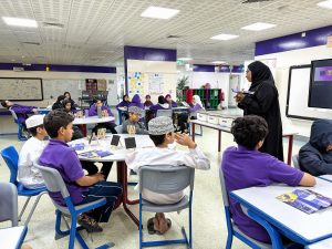 In the primary section, students participated in an activity in collaboration with the Archaeology Department of Sultan Qaboos University and the youth initiative “Salf,” led by Ms. Hamda Al-Maamari. They were introduced to the field of archaeology in the Sultanate of Oman and applied what they learned through hands-on activities such as recreating rock engravings and designing models of archaeological artifacts. These experiences helped them understand Omani national heritage firsthand.